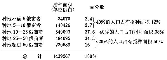 | 每户种地超过25俄亩者 | 150596俄亩 | 即59% |