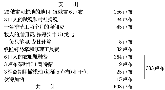 3.梅利托波尔县韦肖洛耶村农民斯捷潘·马斯洛夫的家庭收支表……110