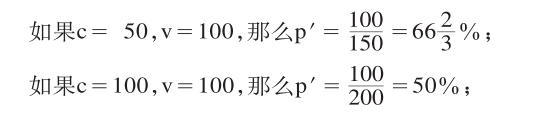 我们已经看到,在资本构成c∶v=50∶100的资本主义发展阶段上,剩余价值率100%表现为利润率