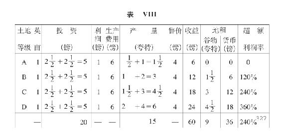 夸特必须靠比A更坏的土地,例如A-1,A-2来生产,情况就会不同,这样一来,对A-1级土地的