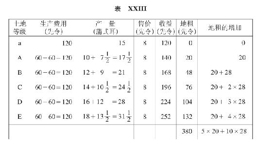 (a)B级土地也不提供地租(表XIII),或者