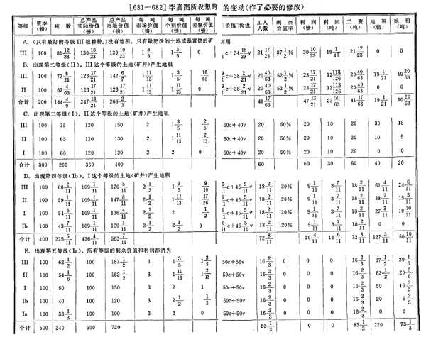 [677](2)所以,对于第二种场合,即当等级Ⅱ出现并产生地租时,我们就得出下表: