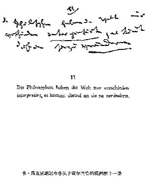 卡·马克思写于1845年春 弗·恩格斯于1888年作为他的“费尔巴哈和德国古典哲学的终结”一书单行本的附录第一次发表 按照已根据卡·马克思的手稿校订过的1888年的版本刊印 原文是德文 |