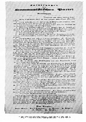 “共产党在德国的要求”是作为指示性的文件分发给回国的共产主义者同盟盟员的。在革命的进程中,马克思、恩格斯和他们的拥护者竭力在人民群众中宣传这个纲领性的文件。1848年9月10日以前,“要求”在科伦印成了传单并分发给莱茵省一些地方的科伦工人联合会的会员。除了一些词句上的更动外,传单的原文第10条的条文也与1848年4月所发表的原文略有不同(见本卷第4页)。1848年10月在柏林召开的第二届民主主义者代表大会上,科伦工人联合会的代表博伊斯特以社会问题处理委员会的名义,建议通过一个纲领,这个纲领中的措施几乎完全摘自“要求”。1848年11月和12月在科伦工人联合会的各次会议上曾讨论过“要求”中的个别条文(特别是第1条和第4条)。